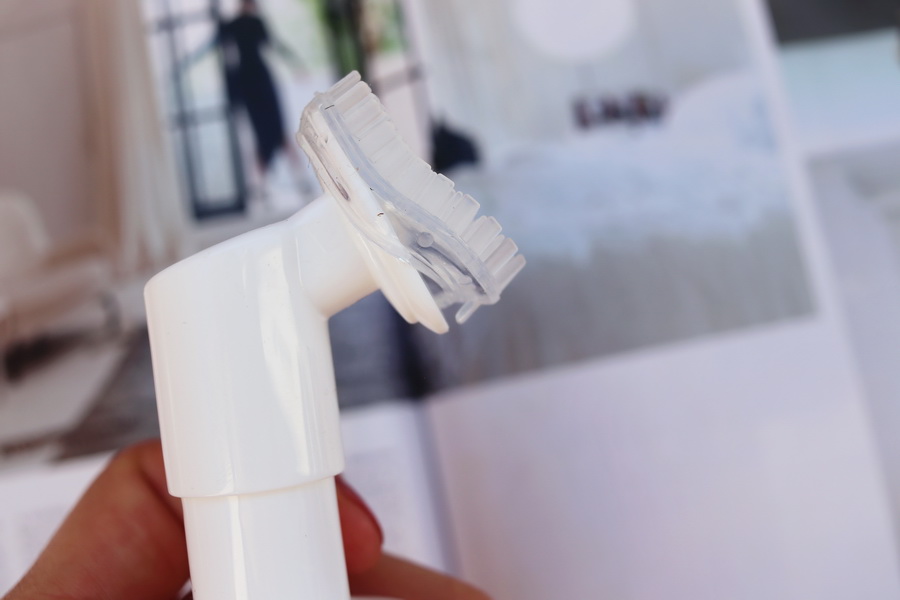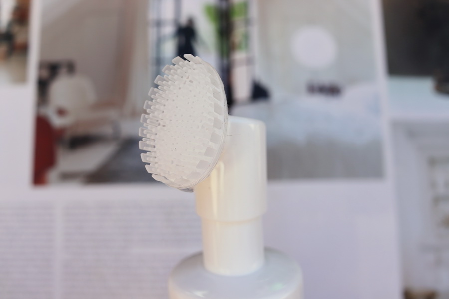 Co je úplně boží, je silikonový kartáček. Je ultra měkký – snad jemnější než čisticí kartáčky na obličej. Štětinky jsou po okrajích podélné, uvnitř zakulacené, takže packu neškrábou. A celý silikonový nástavec jde navíc sundat a vyčistit zvlášť. Jinak stačí jen opláchnout pod teplou vodou a je vyřešeno.