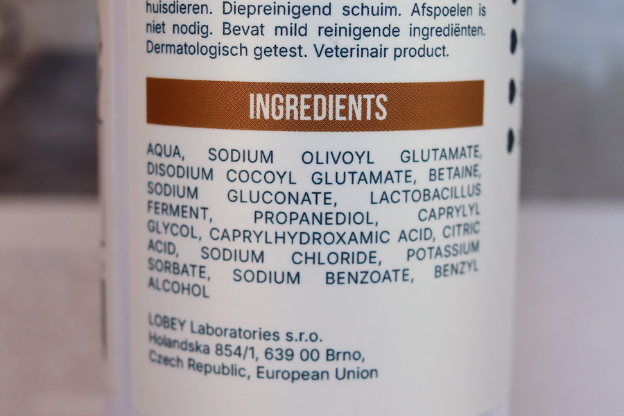 Mycí látky z olivového a kokosového oleje – velmi jemné tenzidy, které nečistoty rozpustí, ale tlapky nevysuší. Betain a propanediol – hydratují polštářky, zjemňují a brání popraskání. Probiotický ferment – obnovuje zdravou mikroflóru pokožky a omezuje množení nepříjemných bakterií z chodníků. Díky tomu jsou tlapky po použití nejen čisté, ale i hebké, zklidněné a chráněné.