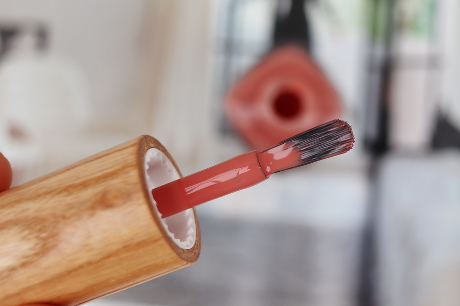 Vzhledově o sobě lak dává vědět už z dálky, že půjde nejspíš o přírodnější a šetrnější variantu a usuzovat tak bude člověk z dřevěného vršku štětečku. Lak se díky tomu dobře drží, pěkně vypadá a je to milý estetický bonus navíc. Důležitým základem úspěchu je ale bezpochyby to, co je pod dřevěným uzávěrem – a teď nemyslím obsah lahvičky, ale samotný štěteček.