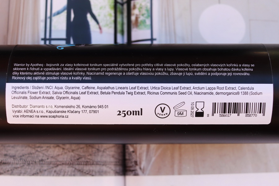 Tonikum Warrior (v překladu „bojovník“) je šikovné tonikum, které Soaphoria vytvořila speciálně pro citlivou vlasovou pokožku. Posiluje oslabené vlasové kořínky, pomáhá řídnoucím a padajícím vlasům zůstat tam, kde mají, a zvládá i zklidnit podrážděnou pokožku nebo potíže s lupy.