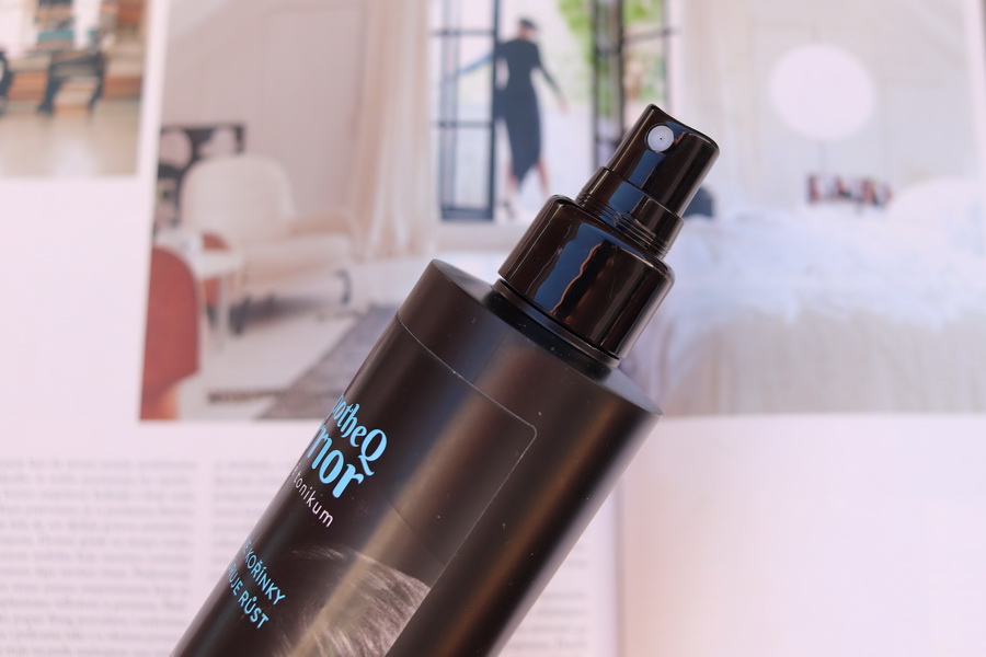 Nutno podotknout, že nenápadnou černou plastovou lahvičku s jemným rozprašovačem byste na pultu snadno přehlédli. Vypadá jako něco, co je v regálu spíš do počtu. Teprve až se začtete do popisku na obalu a pak sklouznete pohledem ke složení, začne vám to celé dávat smysl.