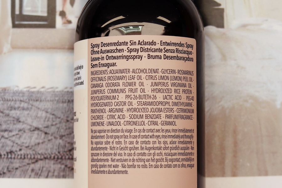 Jinak sprej s oblibou používám každý den k úpravě vlasů. Po umytí a vysušení (nebo i před) se hodí ke zkrocení poletujících vlásků. Ráno při česání vlasy krásně uhladí a provoní verbenou (prý je ve složení citronový olej, ale já prostě cítím řadu Citrus Verbena), takže máte imrvére pocit, že jste si právě hlavu čerstvě umyli.